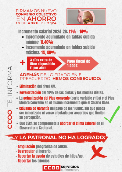 - CCOO, FINE Y UGT conseguimos la firma del Convenio colectivo de Ahorro 2024-2026