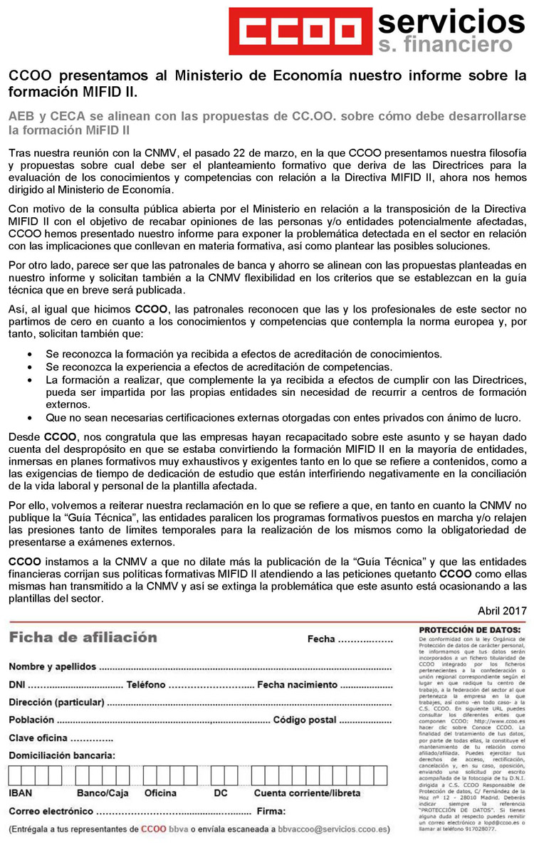 AEB y CECA se alinean con las propuestas de CCOO sobre cómo debe desarrollarse