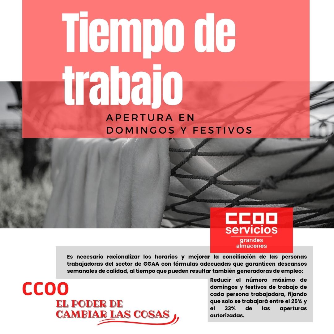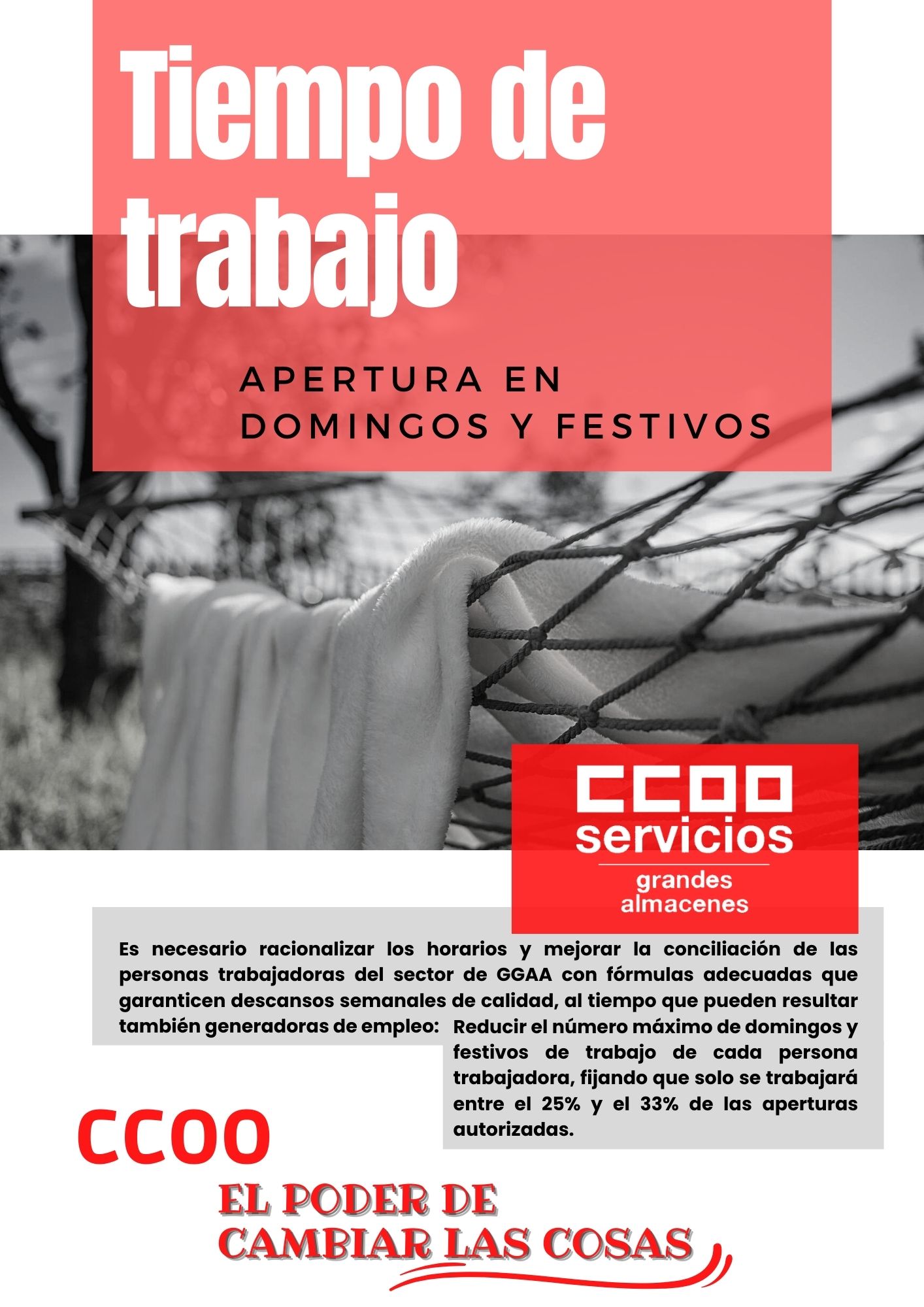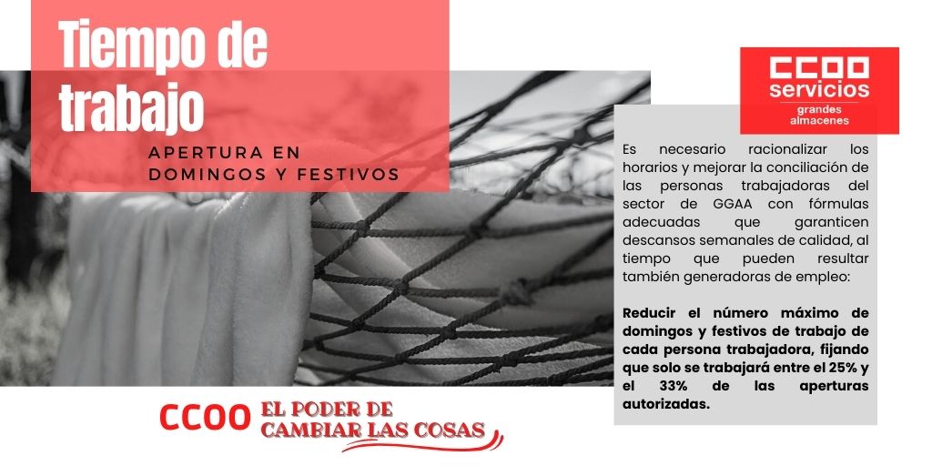 Es necesario racionalizar los horarios y mejorar la conciliación de las personas trabajadoras del sector de grandes almacenes (GGAA) con fórmulas adecuadas que garanticen descansos semanales de calidad, al tiempo que pueden resultar también generadoras de empleo: