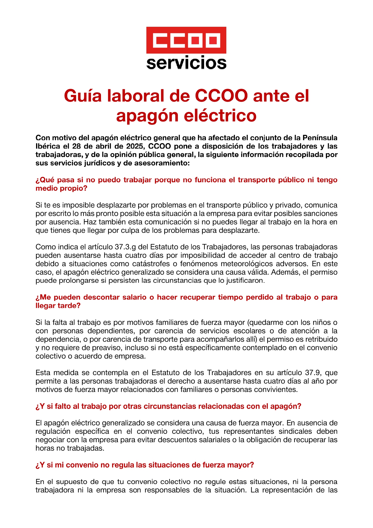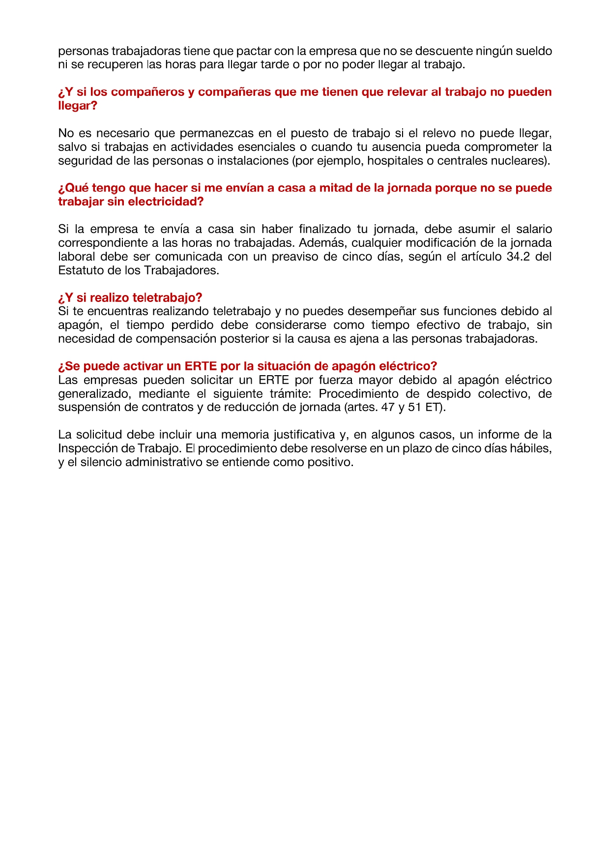 Con motivo del apagón eléctrico general