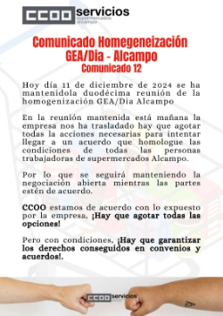 Hoy día 11 de diciembre de 2024 se ha mantenidola duodécima reunión de la homogenización GEA/Dia Alcampo.