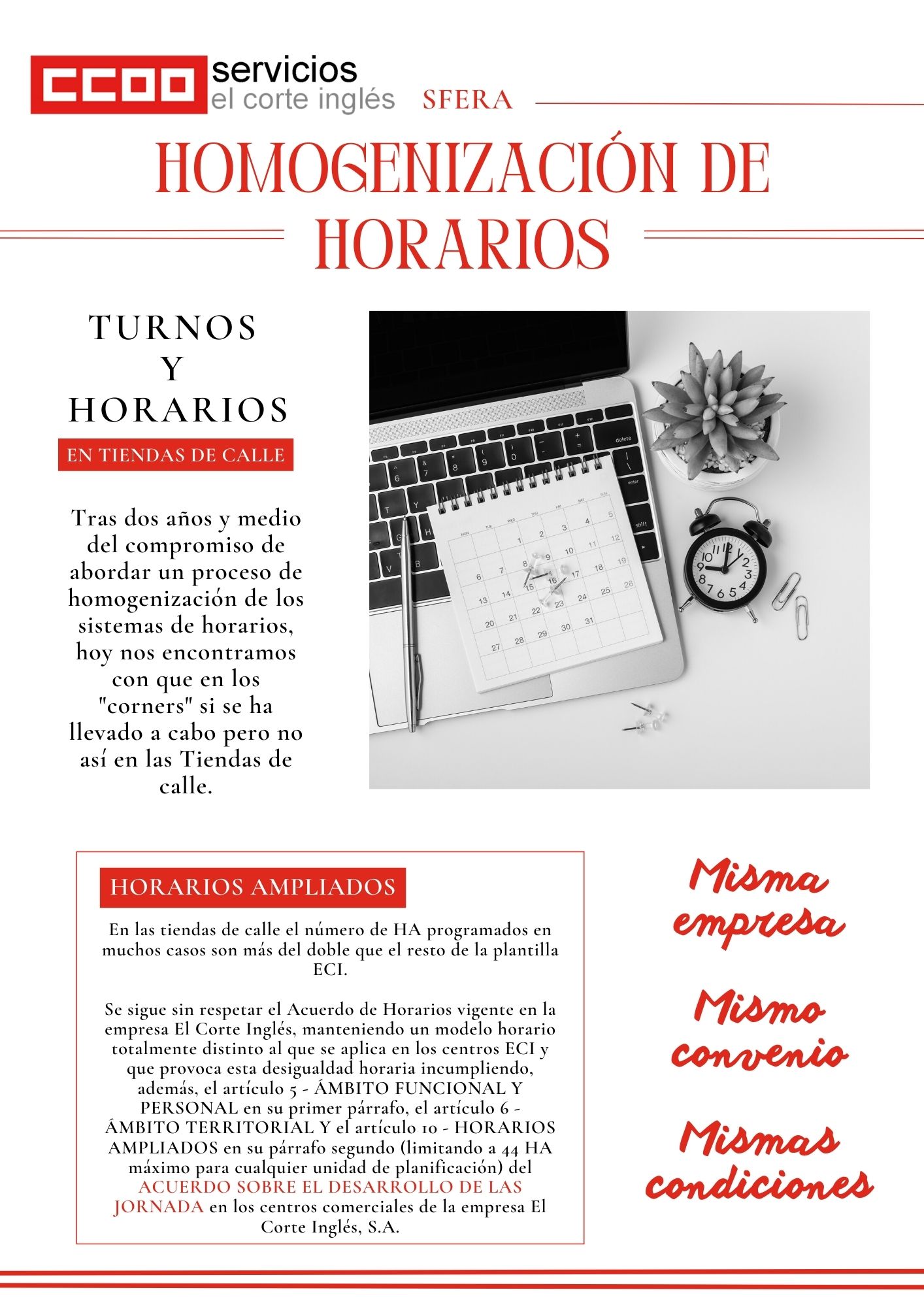 Tras dos años y medio del compromiso de abordar un proceso de homogenización de los sistemas de horarios aún Sfera sigue esperando.