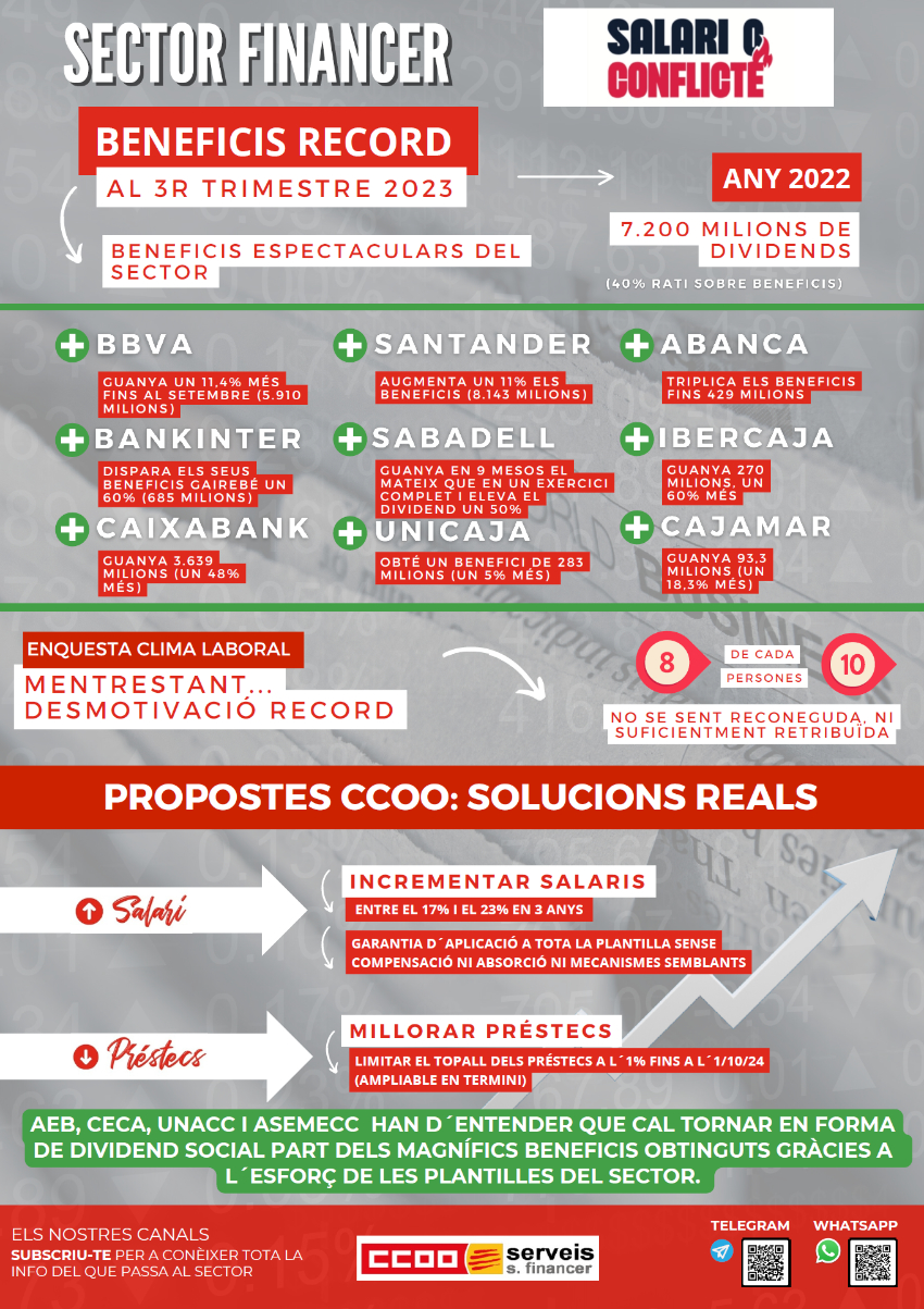 - CCOO exige al sector financiero que reviertan sus beneficios récord en el poder adquisitivo de las plantillas y en la mejora del clima laboral