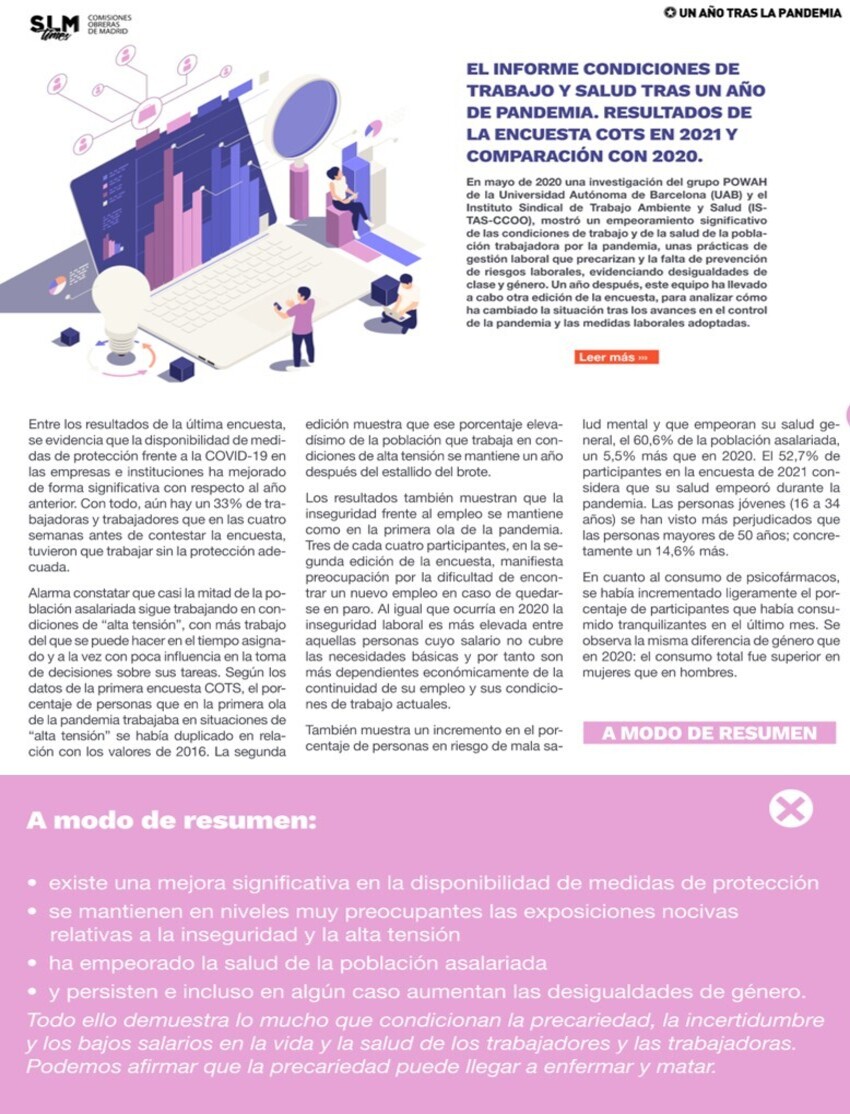 Los resultados fueron concluyentes: la situación generada por la pandemia había implicado un empeoramiento generalizado de las condiciones de trabajo y de los indicadores de salud de las personas asalariadas, hasta límites nunca antes cuantificados.