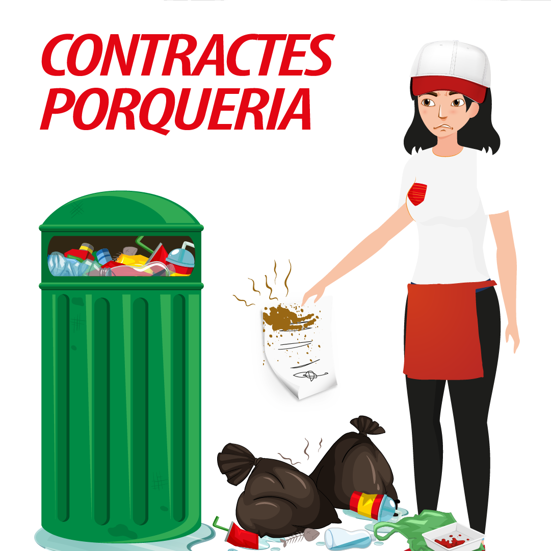 El contrato tipo en el sector es temporal a tiempo parcial de muy pocas horas a los que se añaden horas complementarias que no se consolidan en contrato. Este recurso de las horas complementarias se utiliza de forma excesiva y con una flexibilidad total en beneficio de la empresa. Esto se traduce en grandes tasas de rotación en los centros de trabajo e inestabilidad e inseguridad laboral y económica para las plantillas.
