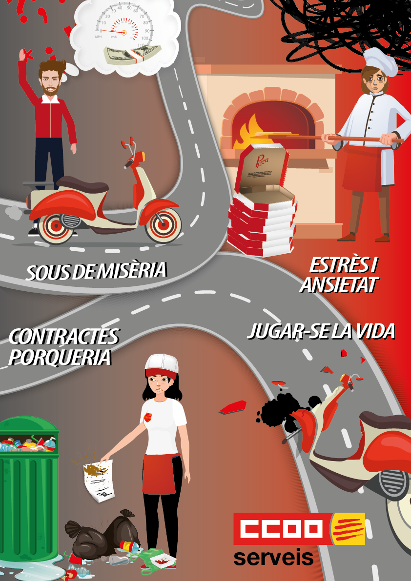 El ritmo de trabajo es muy alto, falta personal y tienen que trabajar a gran velocidad (característica inherente al sector). El estrés y la ansiedad que esta mala organización del trabajo supone, hace que los y las trabajadoras se expongan más a los riesgos. Accidentes de tráfico, resbalones, cortes, quemaduras…