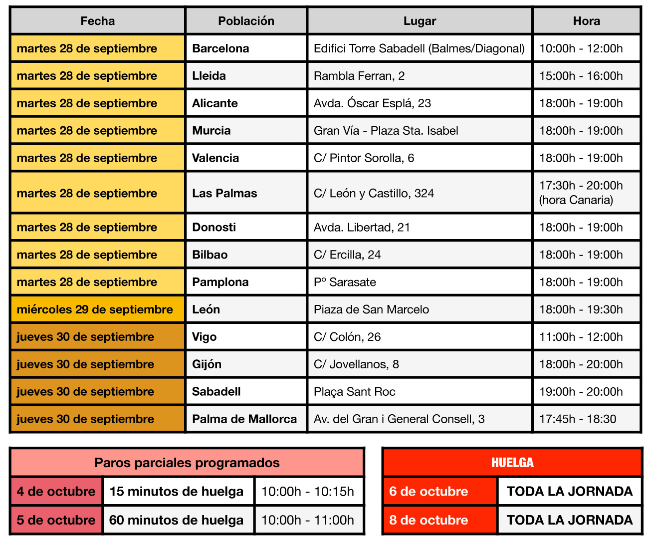 Detallamos las concentraciones de esta semana, así como las jornadas de huelga previstas: