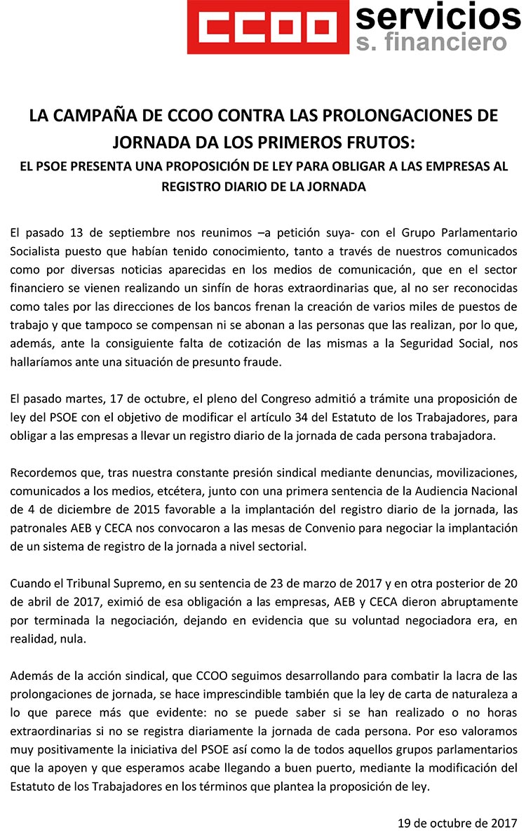 La Campaña de CCOO contra las Prolongaciones de Jornada da los Primeros Frutos