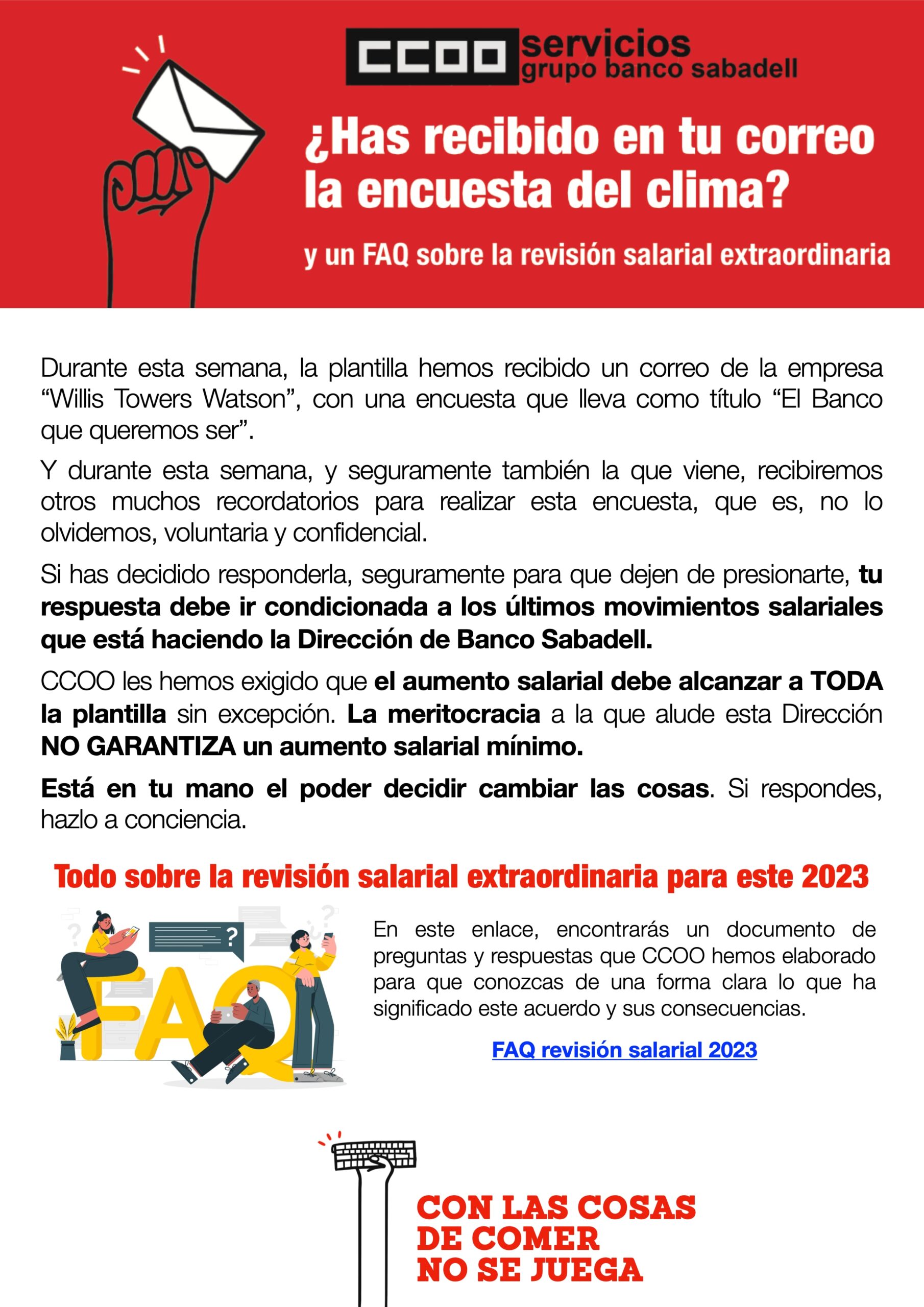 BBVA ATIENDE PETICIONES DE CCOO, PERO…SE QUEDA CORTO
