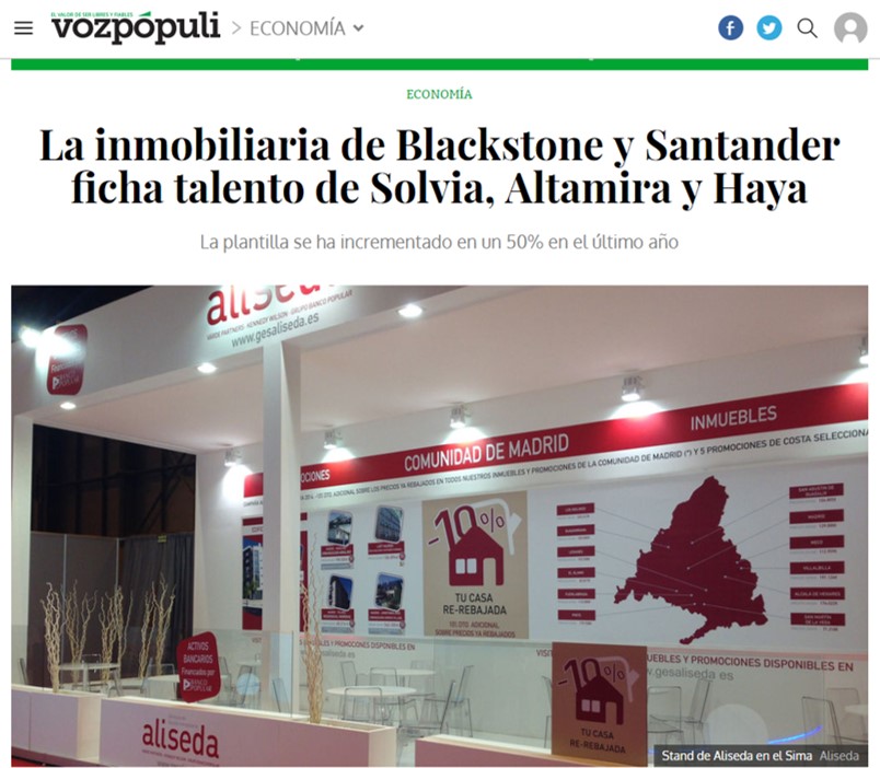 Voz Populi – La inmobiliaria de Blackstone y Santander ficha talento de Solvia, Altamira y Haya
