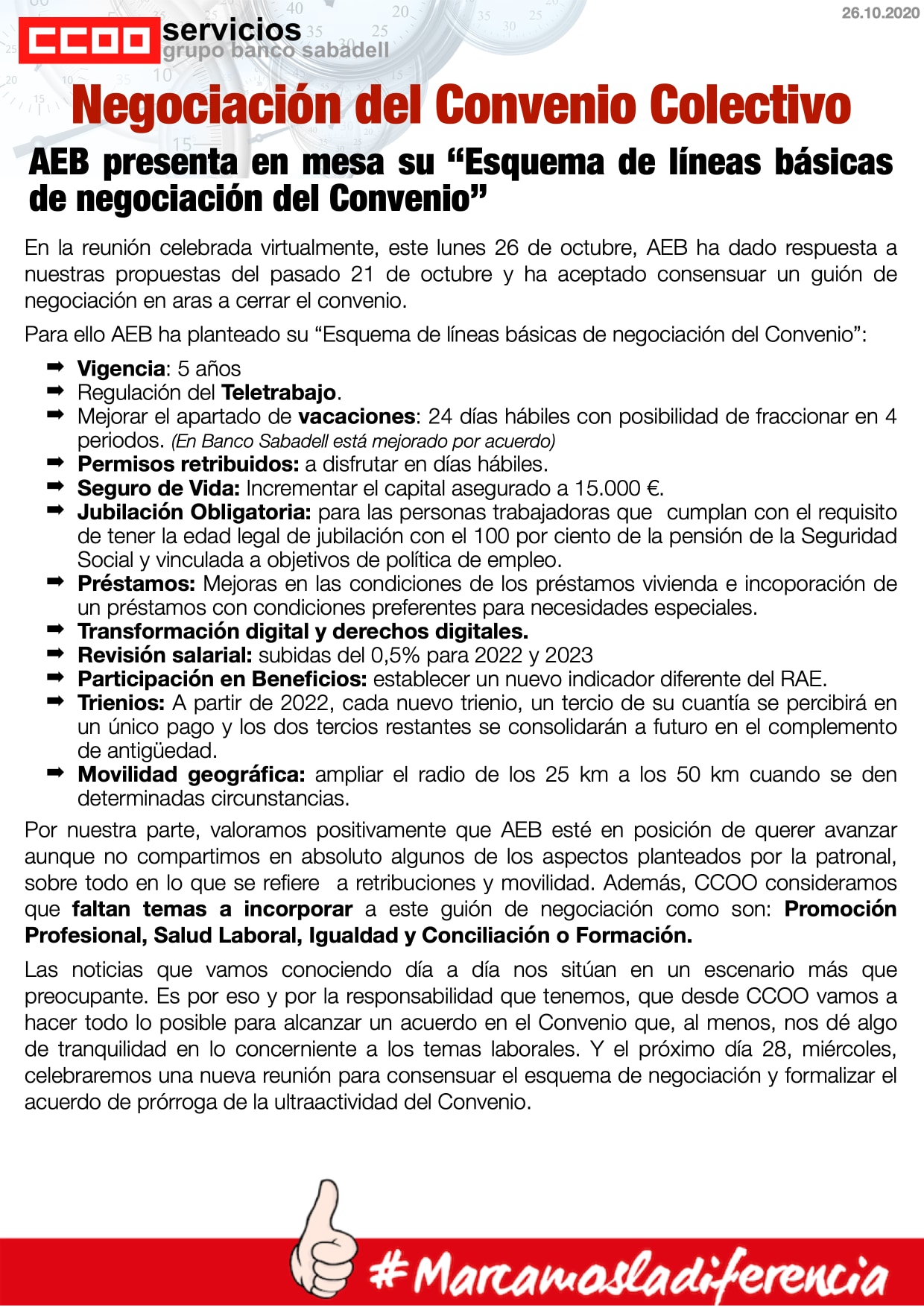 AEB presenta en mesa su «Esquema de líneas báicas de negociación del Convenio «