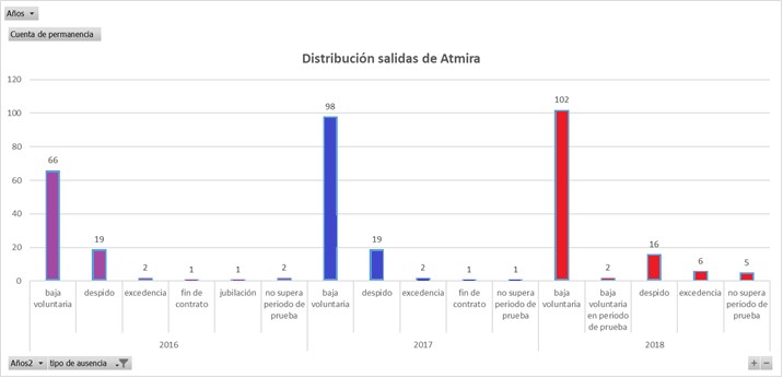 Esto tiene una clara contraparte… las contrataciones. El enorme esfuerzo para atajar la sangría a base de transfusiones, porque la herida no se cierra (o no la quieren cerrar), que deben hacer en el departamento de Captación y Contratación, sobredimensionado para lo que es Atmira pero justificado por la realidad que nos toca vivir. Y es que, para imaginar la situación actual, en lo que va de año, el ritmo de contratación en Madrid es de tres personas cada 5 días… y sin crecimiento neto en la plantilla de este centro.
