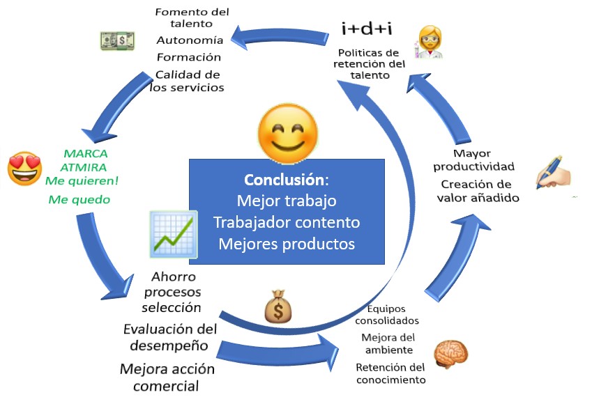 ¿La del circulo vicioso o la del círculo virtuoso? Si desde arriba solo piensan en lo de siempre, estamos abocados al fracaso. Hay más cosas que dividendos y que clientes, Y MÁS ALTO Y CLARO NO SE PUEDE DECIR. Solo con un cambio de rumbo, hacia políticas orientadas a la satisfacción del trabajador, haremos que la rueda gire en la dirección correcta del éxito.