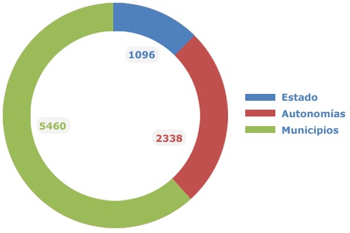 Pero a su vez, de todas estas administraciones (y del propio Estado) cuelga un entramado de todo tipo de entidades, muchas de ellas ajenas a cualquier tipo de fiscalización, como se muestra en el siguiente cuadro: