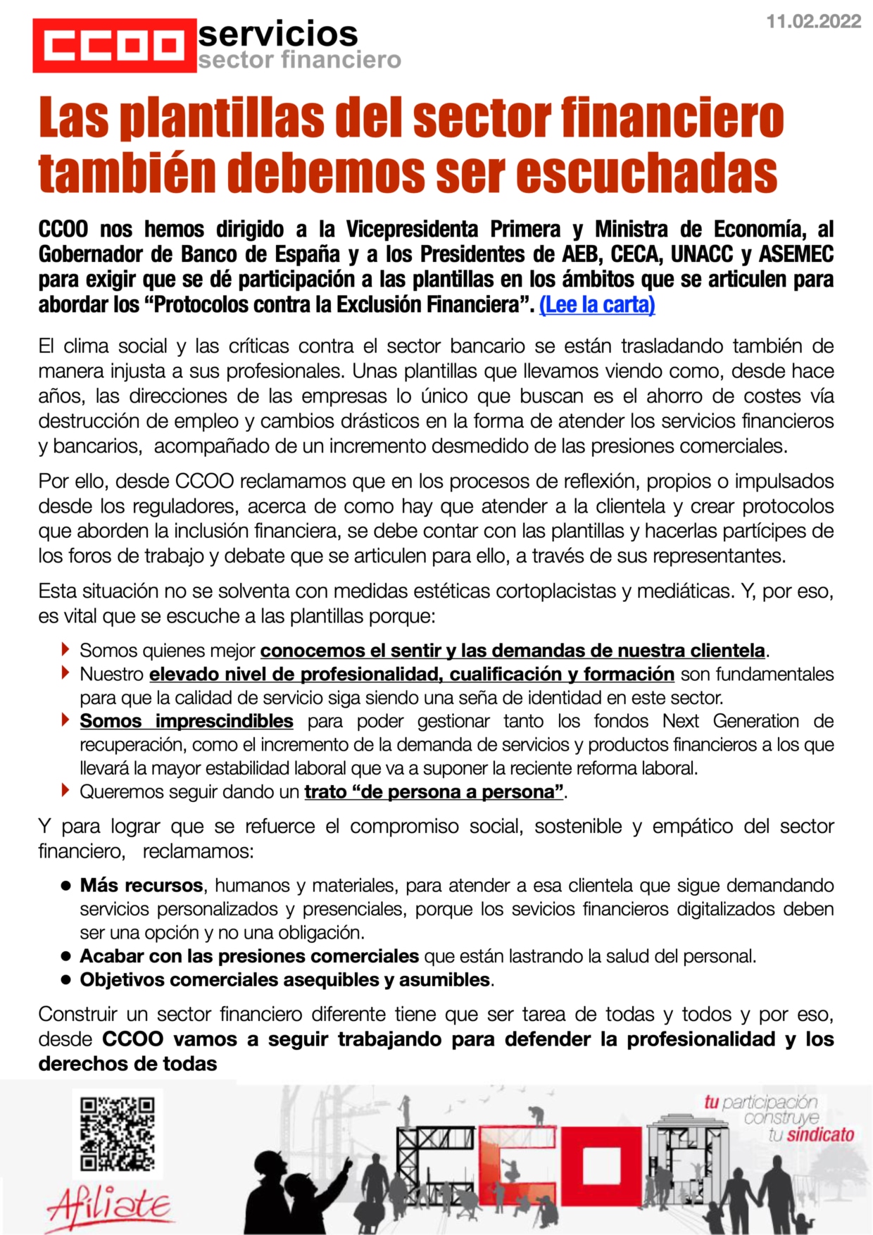 Las plantillas del sector financiero también debemos ser escuchadas