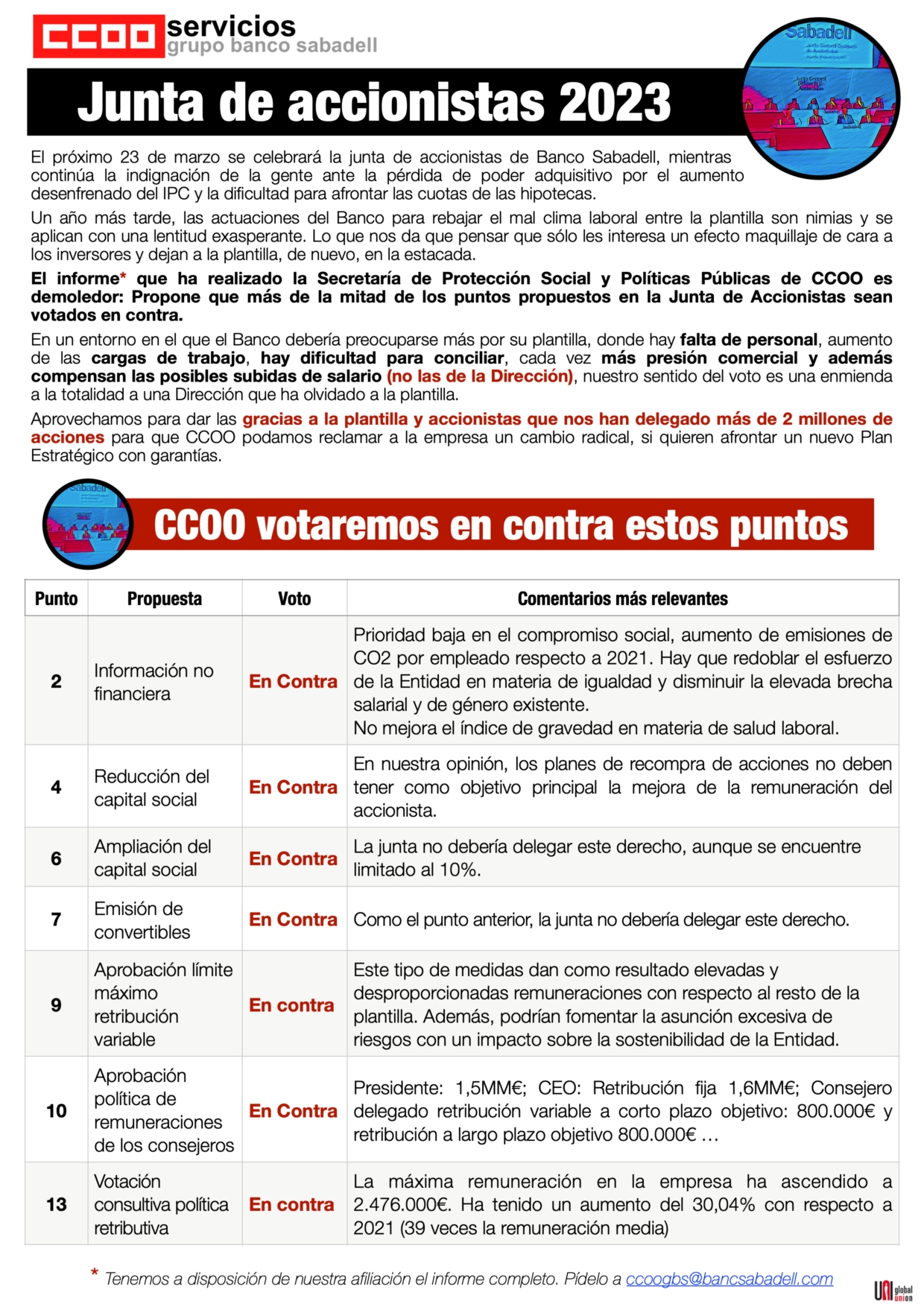Lo que CCOO votaremos en la Junta
