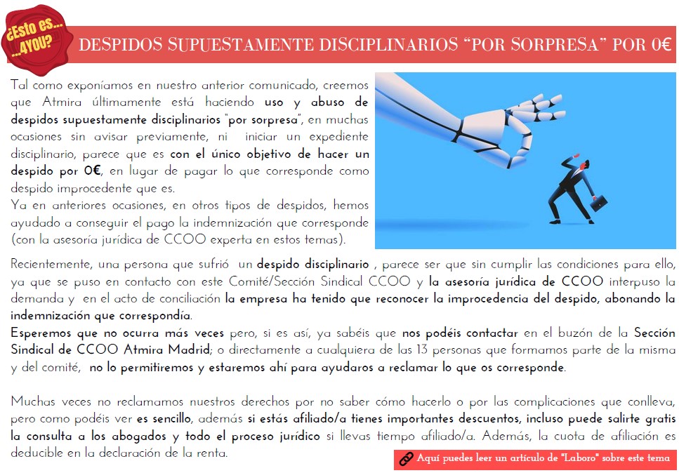 - Despidos supuestamente disciplinarios "por sorpresa" por 0€.