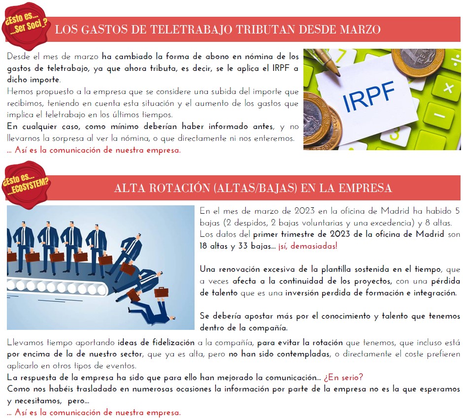 En esta ocasión queremos informaros de los temas que no nos comunica la empresa, pero creemos que son más importantes que los que habitualmente nos informan.