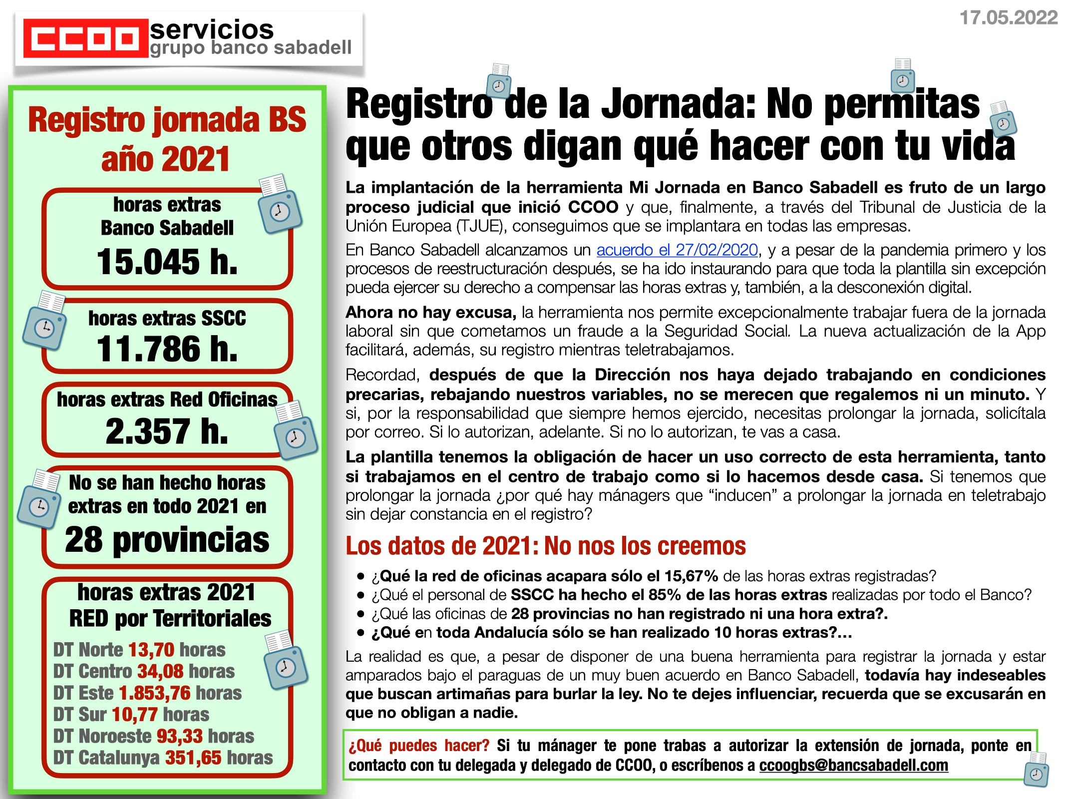 Los datos de registro de la jornada 2021 son inverosímiles. Y no es culpa de la plantilla