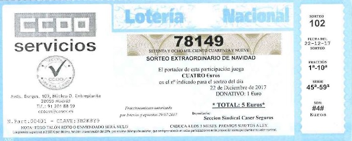 LOTERIA NAVIDAD 2017 CCOO