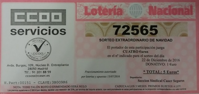 LOTERIA NAVIDAD SECCION SINDICAL CCOO CASER