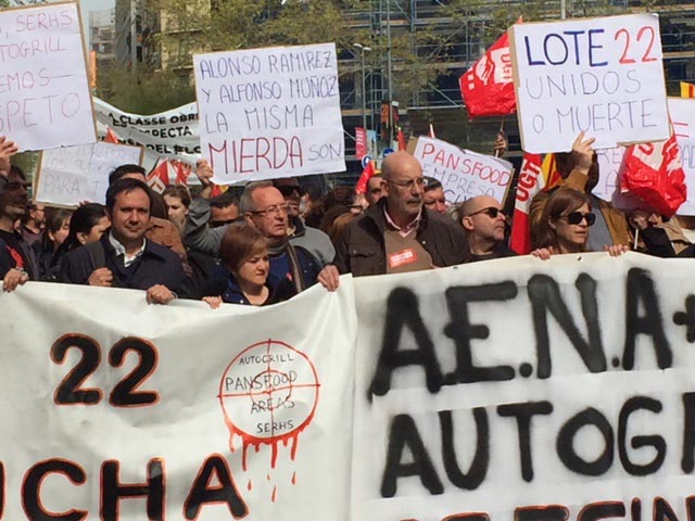 Hoy, martes día 3 de abril se ha celebrado una manifestación que salido desde la Avenida Diagonal esquina calle Bruc hasta la Delegación del Gobierno, Calle Mallorca con Roger de Lluria, A la Manifestación que ha contado con el apoyo masivo de la plantilla, y donde han asistido entre otros los responsables de CCOO de la Federación de Servicios y los responsables estales del sector de la hostelería de los aeropuertos Antonio Ruda y el responsable Federal de Hostelería, Turismo y Juego Gonzalo Fuentes.