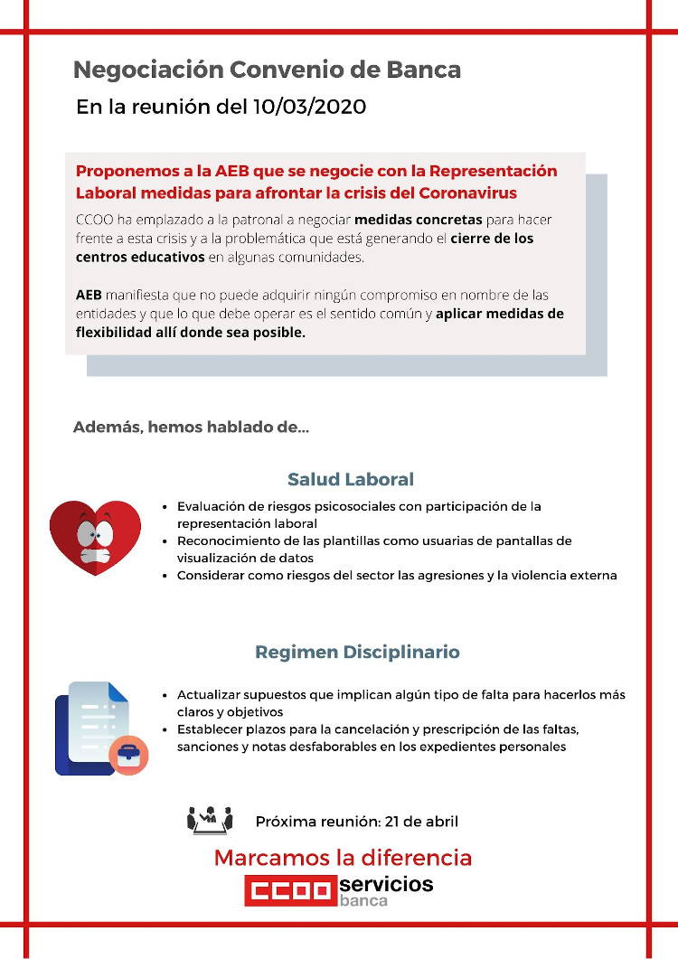 Proponemos a la AEB que se negocie con la Representación Laboral medidas para afrontar la crisis del Coronavirus.