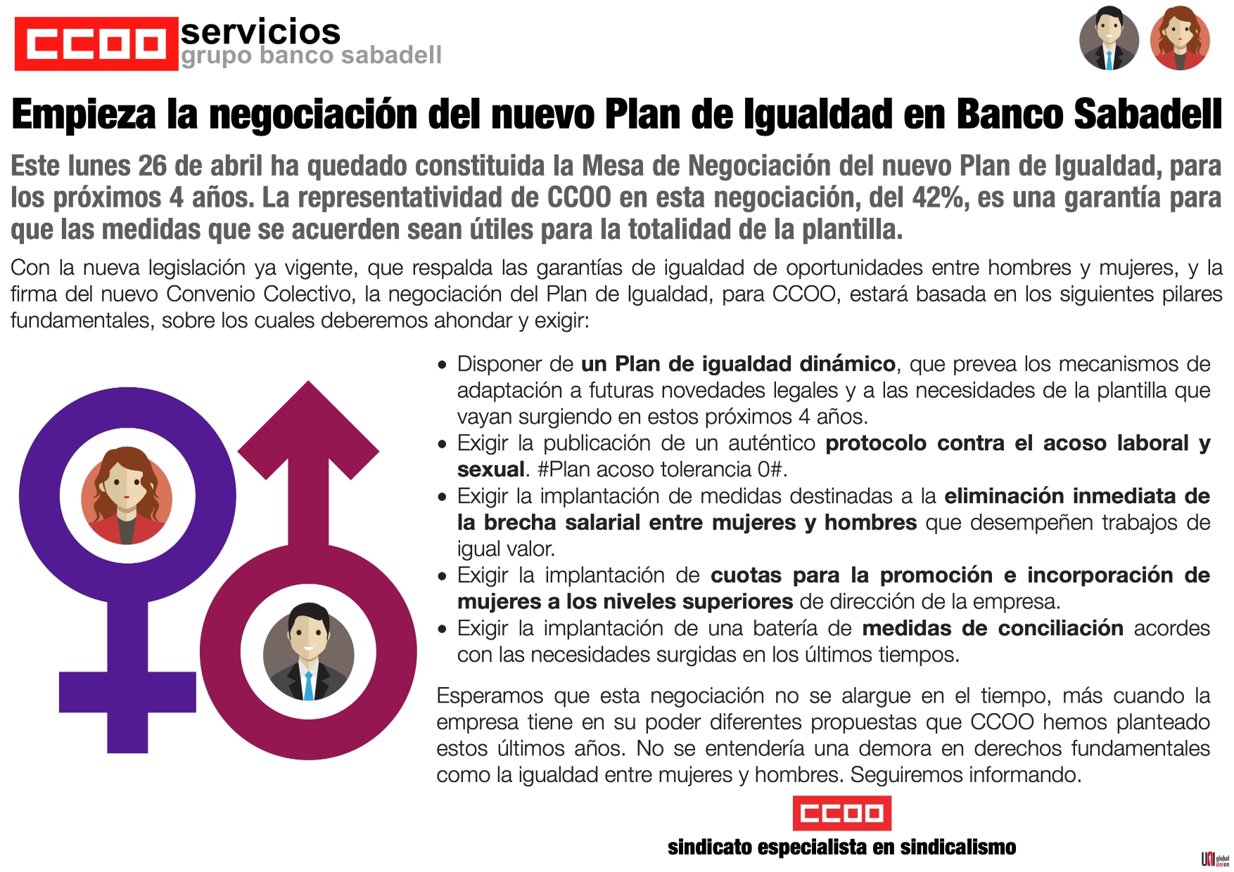 Negociación del nuevo Plan de Igualdad en Banco Sabadell