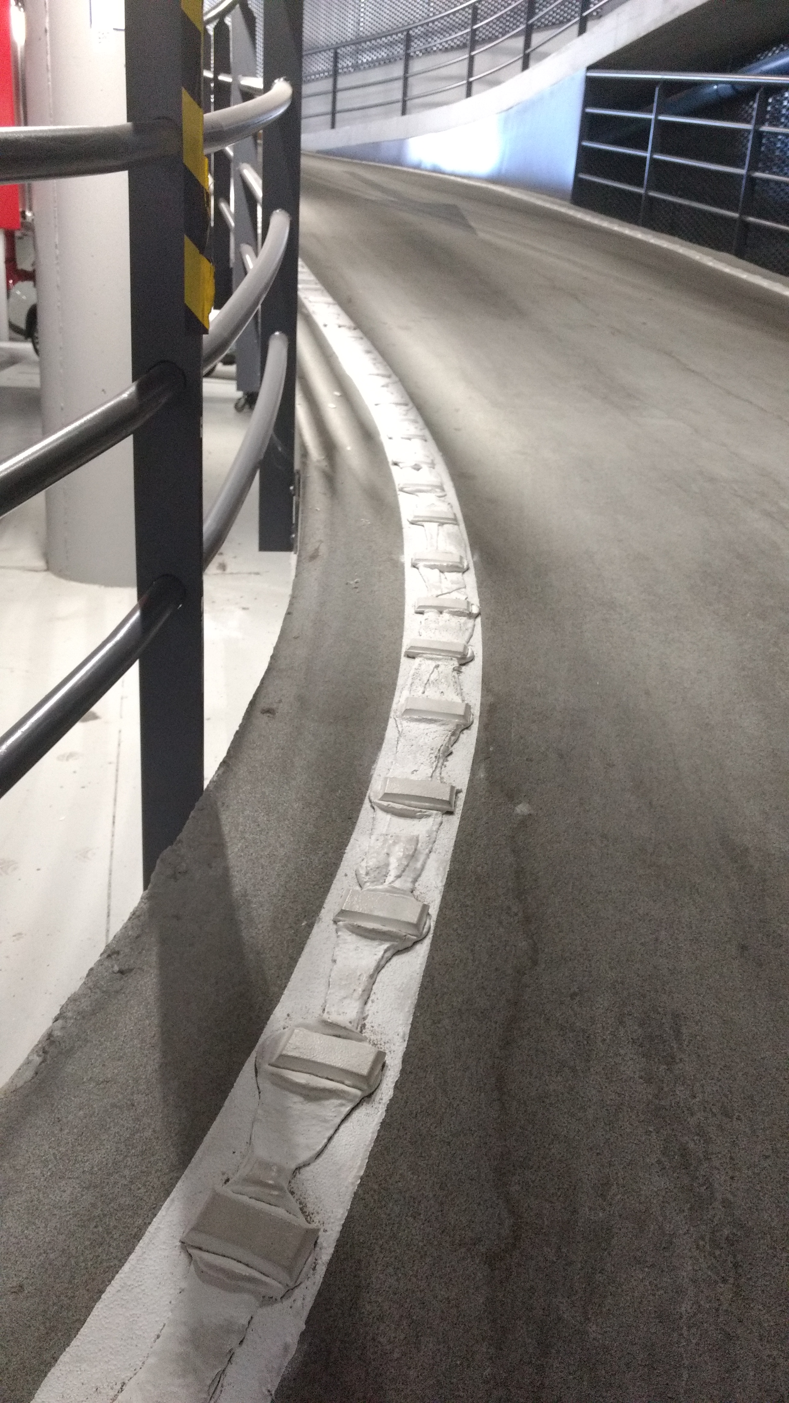 Os podemos comunicar que durante este pasado mes de agosto, se han realizado por fin, alguna de las mejoras sugeridas cuando denunciamos el gran número de accidentes y reventones de rueda que se venían produciendo en la entrada del garaje, concretamente se han instalado bandas sonoras de rodadura y pegatinas , por cierto, estas últimas ya están medio arrancadas por accidentes anteriores a la instalación de dicha banda