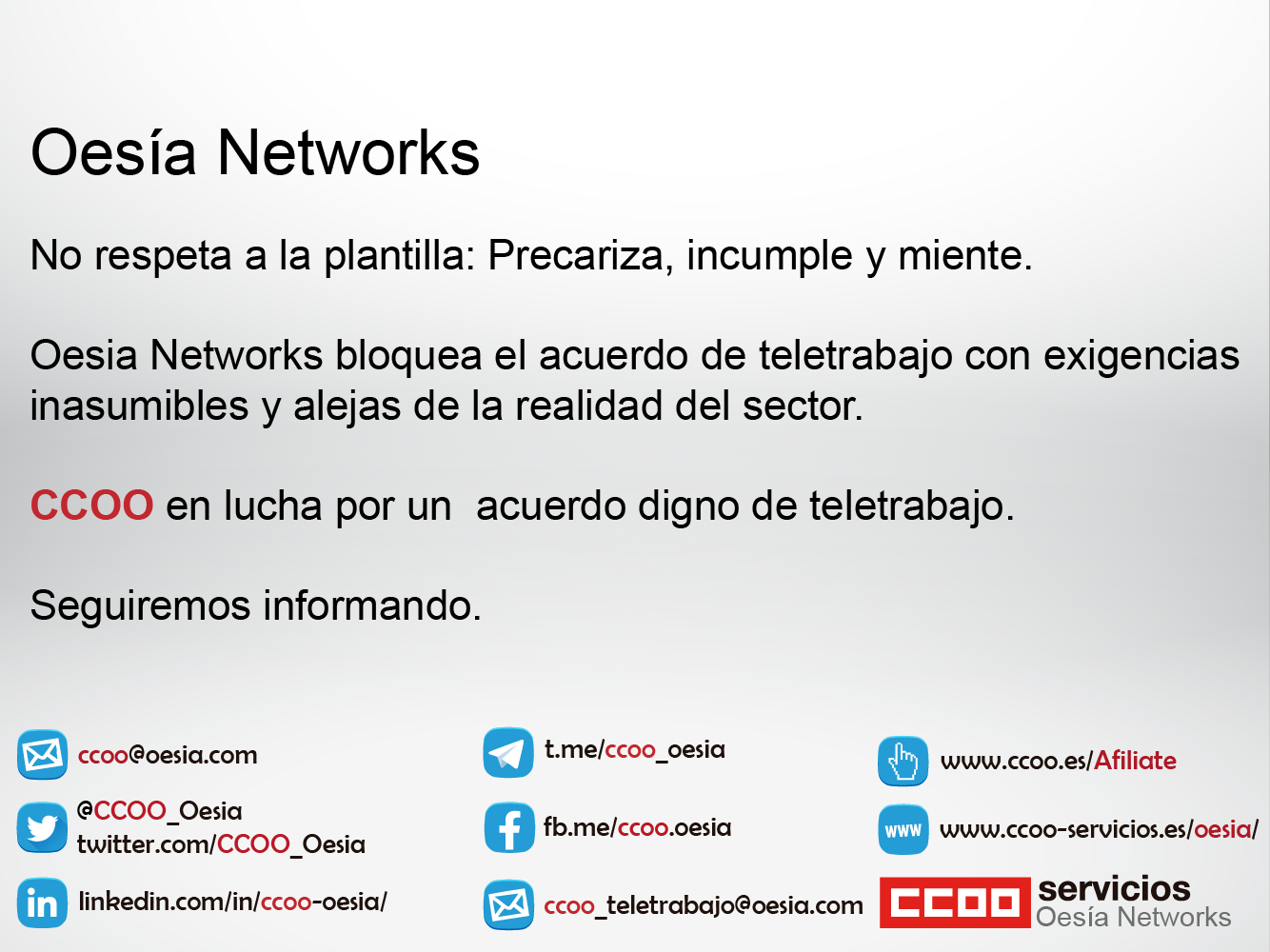 Oesia Networks bloquea el acuerdo de teletrabajo con exigencias inasumibles y alejas de la realidad del sector.