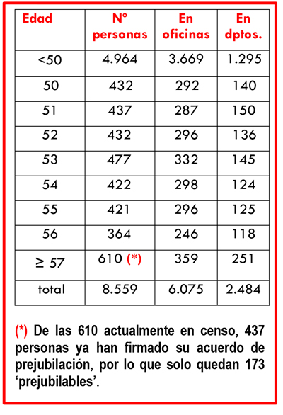- Proponen la extinción de 1513 contratos de trabajo (508 de SS.CC y 1005 en Red comercial), pero rechazan la adscripción voluntaria de personas con edades comprendidas entre los 50 y 56 años (que suman casi 3.000)