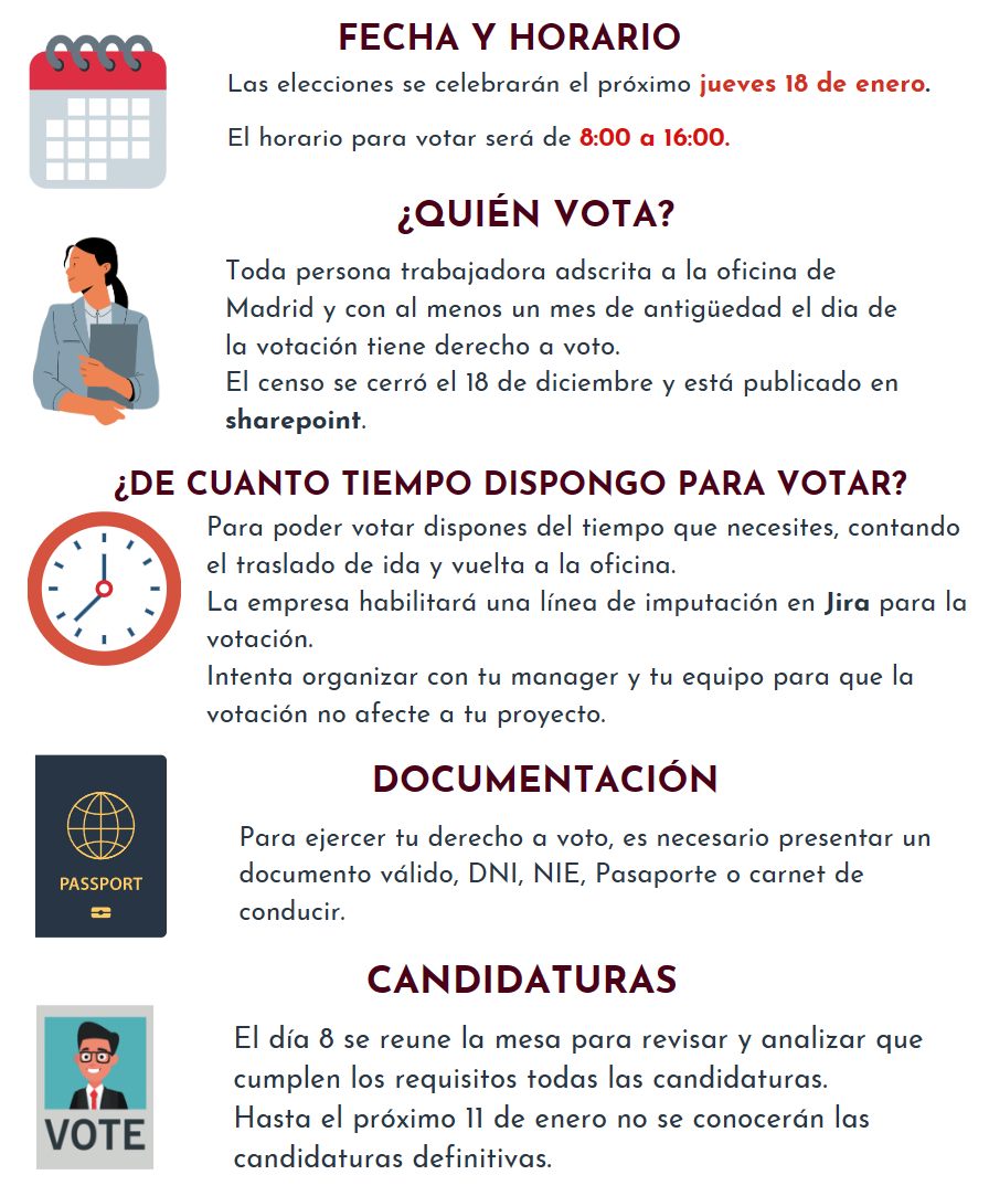 Como ya os adelantamos en anteriores comunicados y la mesa electoral ha informado por correo electrónico a toda la plantilla de Atmira Madrid, ha comenzado el periodo electoral para elegir los representantes sindicales de la delegación de Madrid para los próximos 4 años.