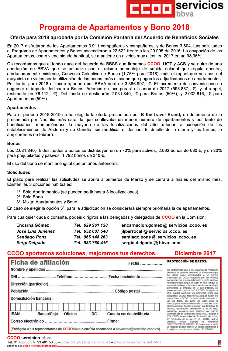 Oferta para 2018 aprobada por la Comisión Paritaria del Acuerdo de Beneficios Sociales.