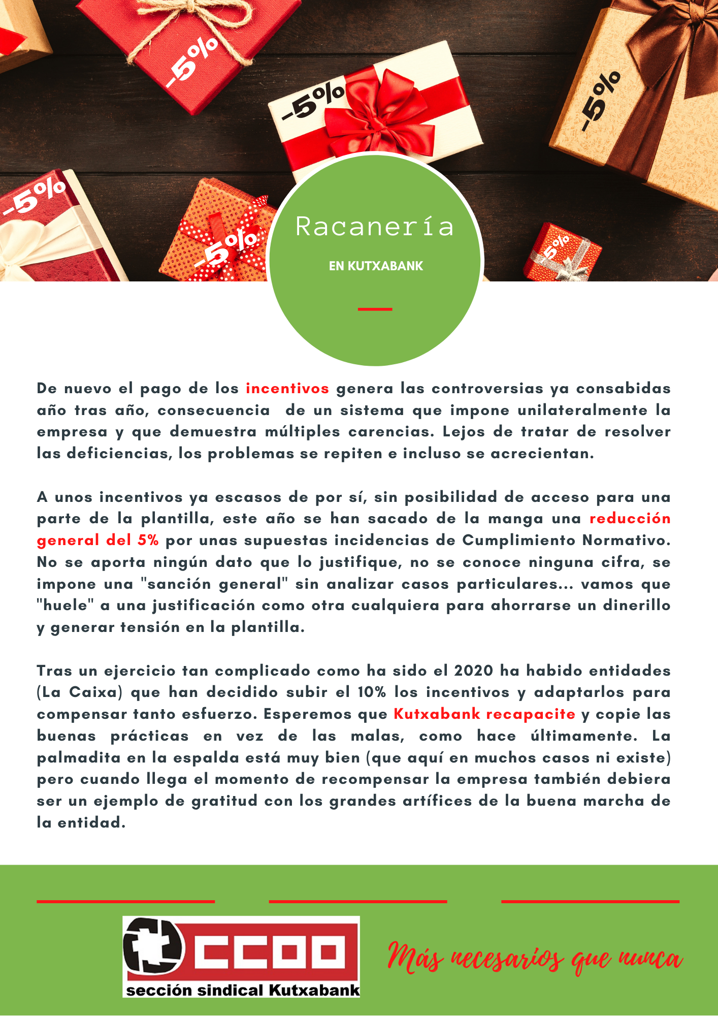 El abono de los incentivos genera nuevas controversias. A todas las ya conocidas se suma este año una reducción que nadie entiende y se ha sacado de la manga la empresa. Te contamos más…