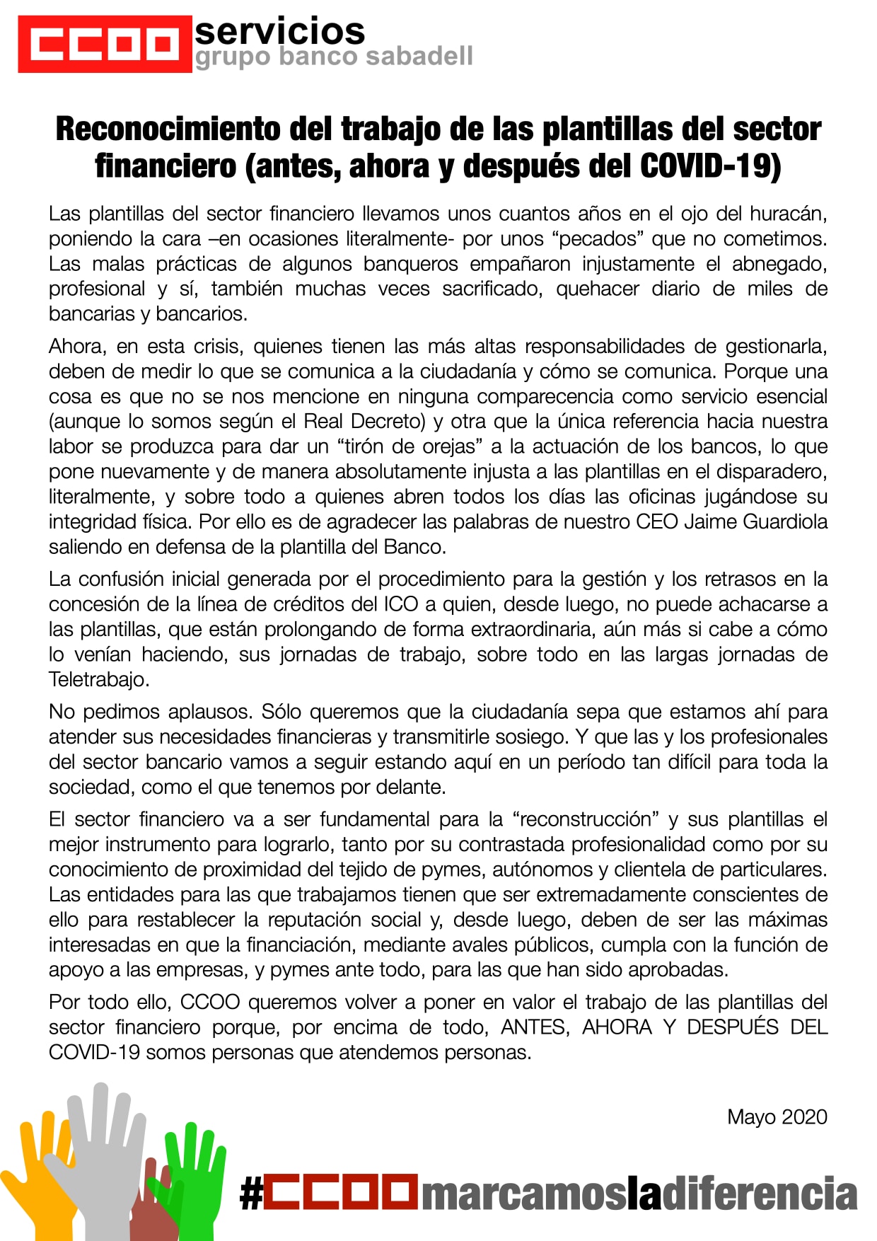 ←Reconocimiento del trabajo de las plantillas del sector financiero