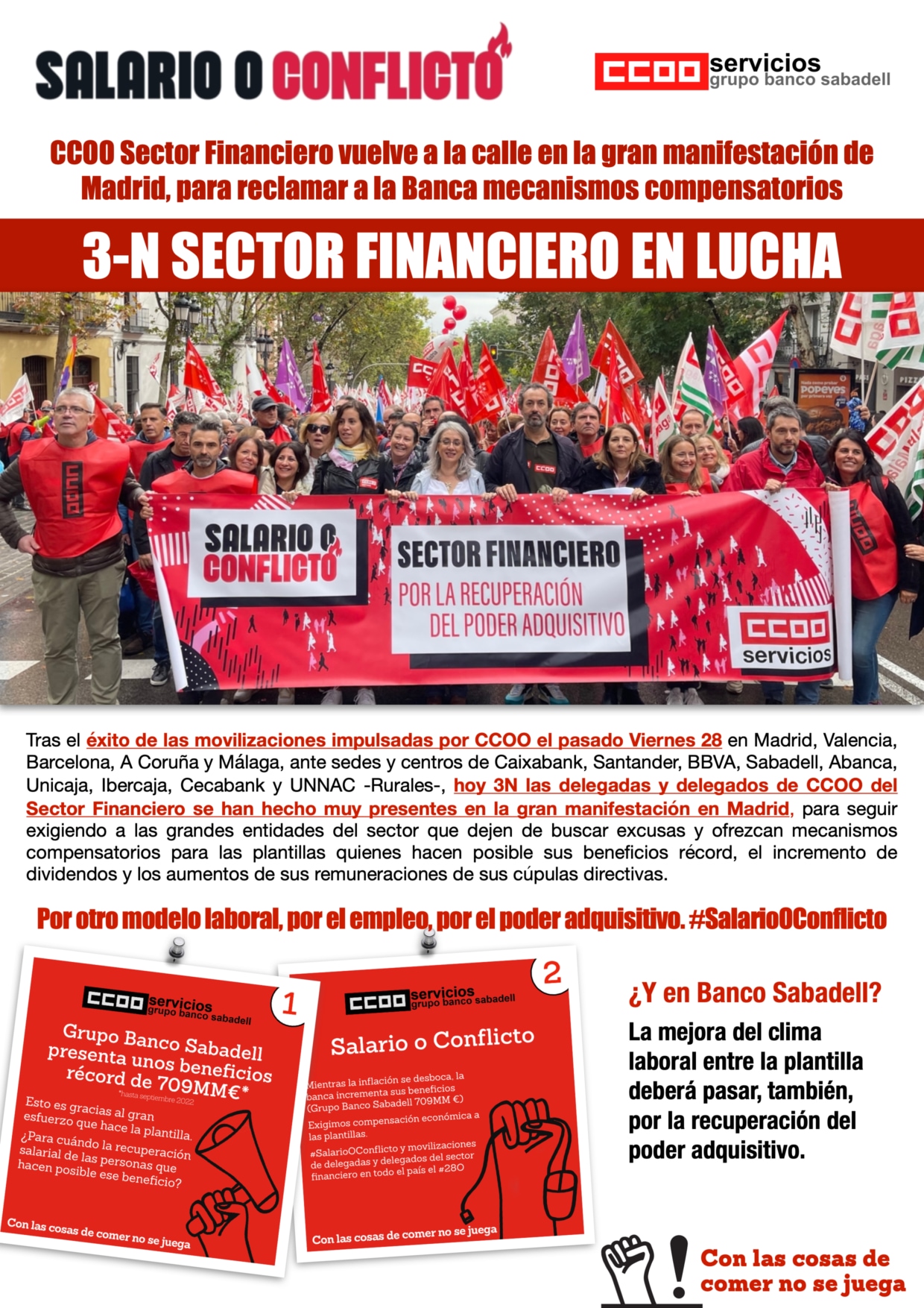 CCOO informa: Las delegadas y delegados de CCOO se movilizan ante las principales entidades en la semana de presentación de beneficios récord→
