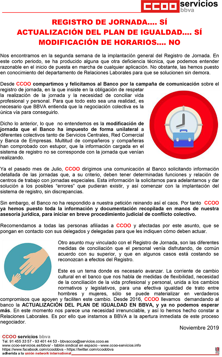 Registro de Jornada…. SÍ Actualitzación del Plan de Igualdad…. SÍ Modificación de Horarios…. NO