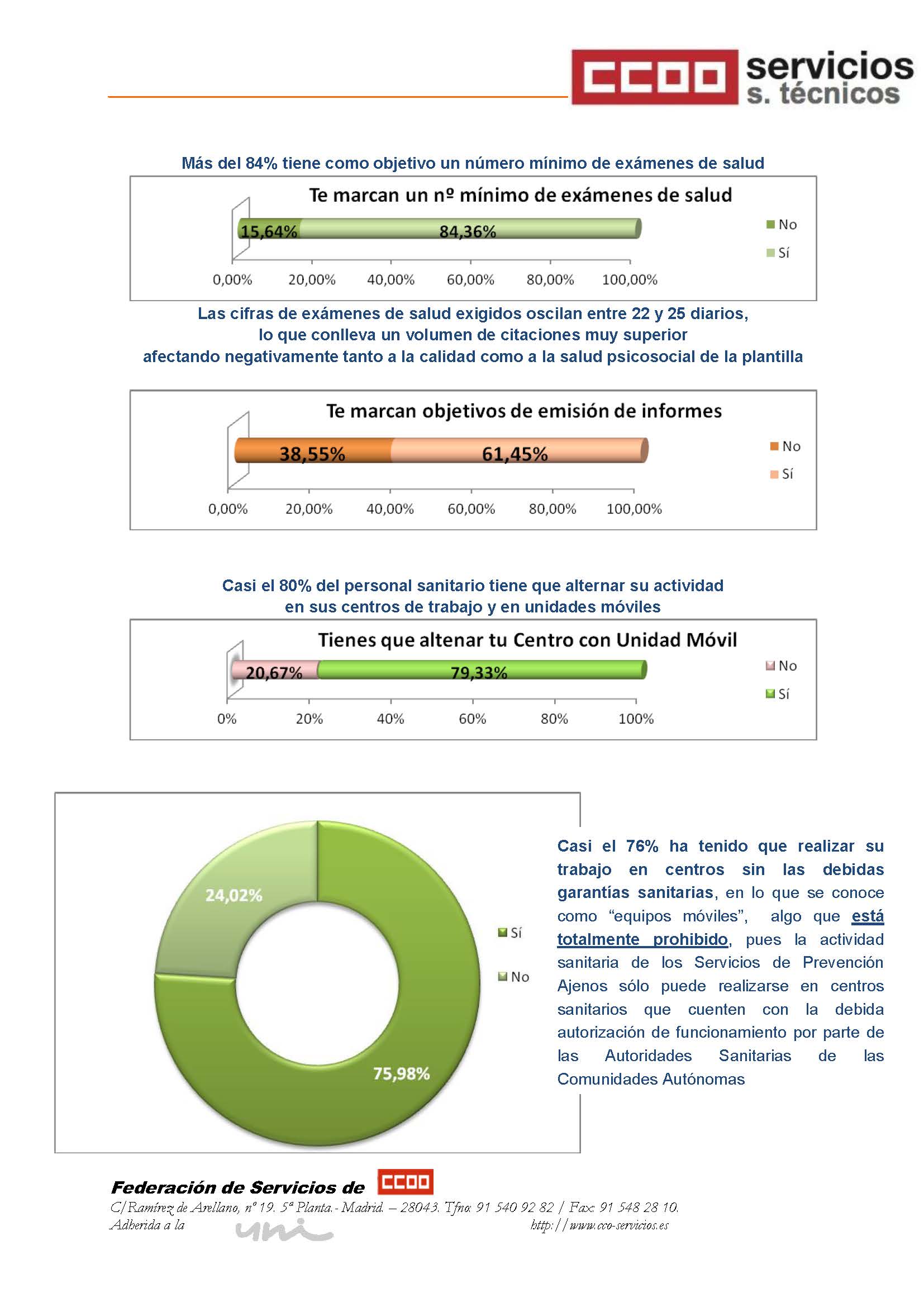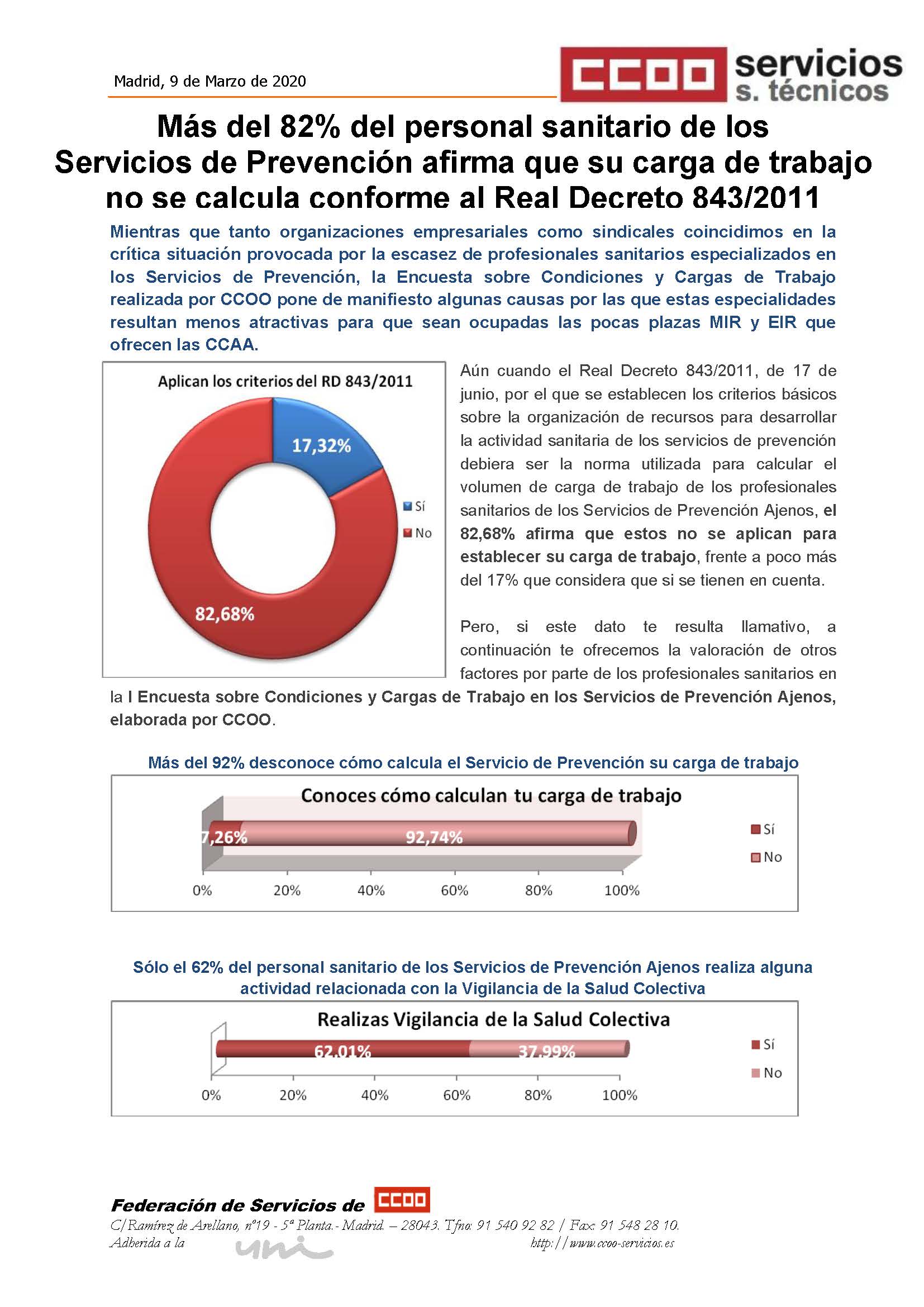 Más del 82% del personal sanitario de los Servicios de Prevención afirma que su carga de trabajo no se calcula conforme al Real Decreto 843/2011