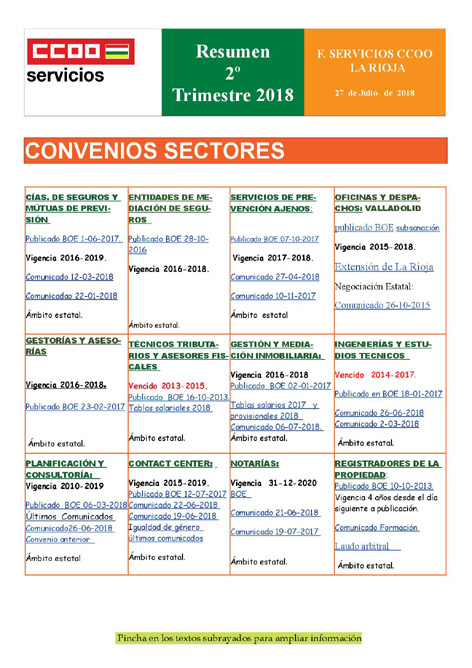 Resumen 2º Trimestre año 2018 Federación Servicios CCOO de La Rioja