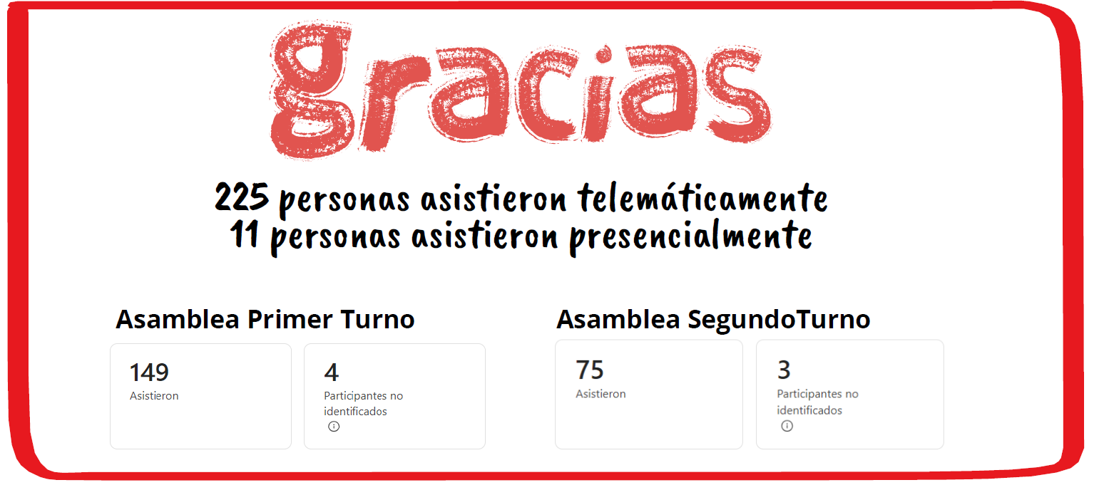 La asamblea tuvo un gran volumen de asistencia y, por ello, queremos dar las GRACIAS a todas las personas que dedicaron su tiempo a escucharnos y a aportar su opinión.