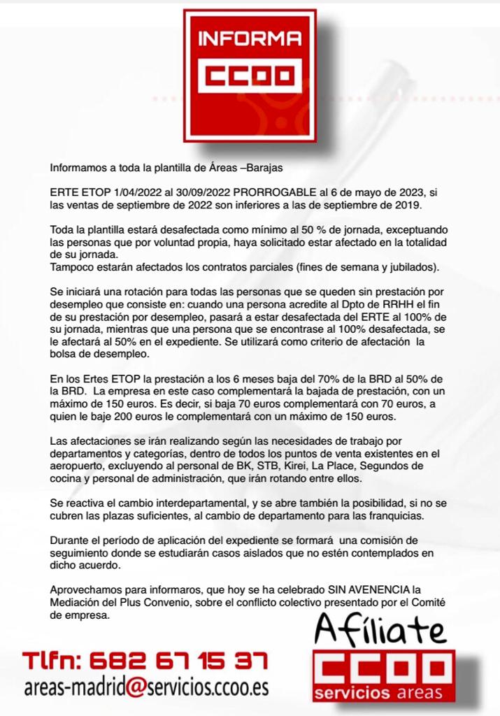 A continuación os adjuntamos el comunicado que se entregó a cada compañera y compañero que asistió a la asamblea, para que podáis ver todo el contenido sobre los nuevos ERTES: