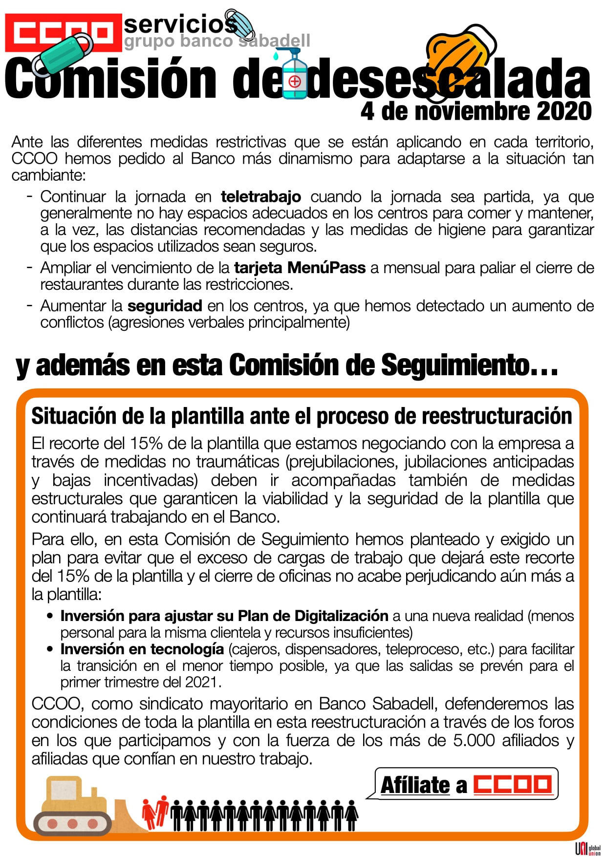 Reunión de la comisión de desescalada de Banco Sabadell del 4 de noviembre