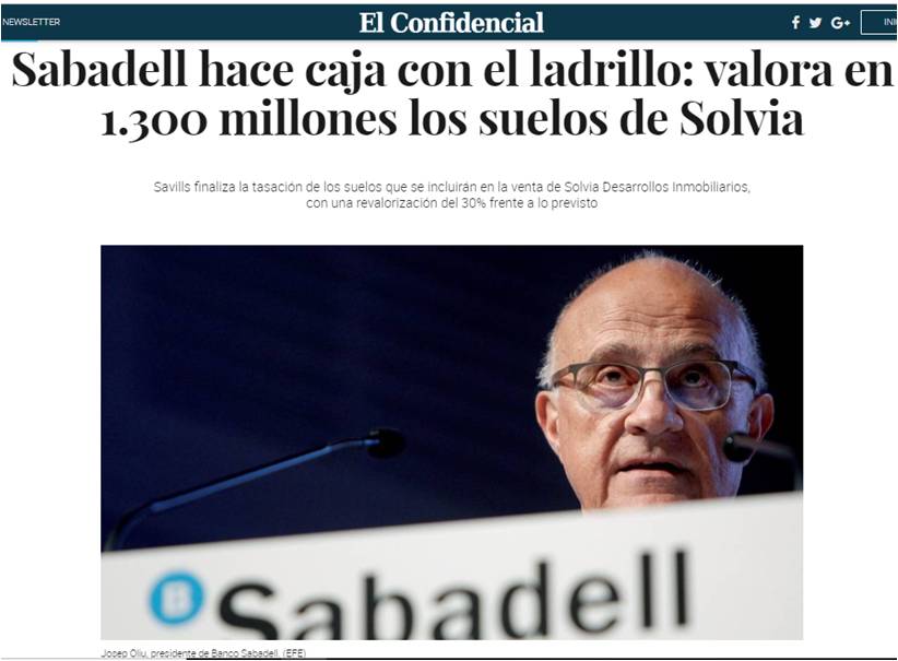 El Confidencial. Sabadell hace caja con el ladrillo: valora en 1.300 millones los suelos de Solvia