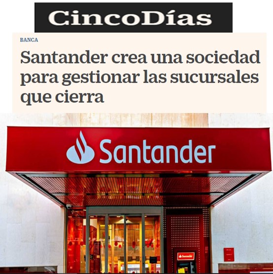 CincoDías – Santander crea una sociedad para gestionar las sucursales que cierra