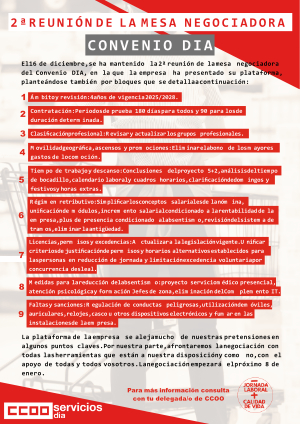 El 16 de diciembre, se ha mantenido la 2ª reunión de la mesa negociadora del Convenio DIA, en la que la empresa ha presentado su plataforma.