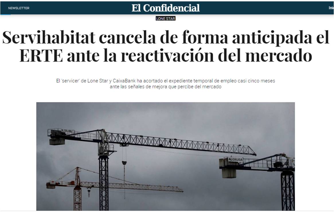 ElConfidencial – Servihabitat cancela de forma anticipada el ERTE ante la reactivación del mercado
