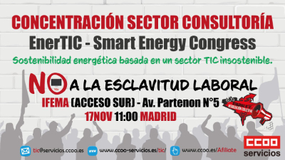 Las protestas se centrarán en 2 eventos tecnológicos de relevancia, el Smart Energy Congress en IFEMA-Madrid y el WomanLiderTIC en Barcelona. CCOO manifiesta que la patronal y sus asociados continúan anclados en la precariedad, no entienden que las plantillas están hartas de perder derechos año tras año.