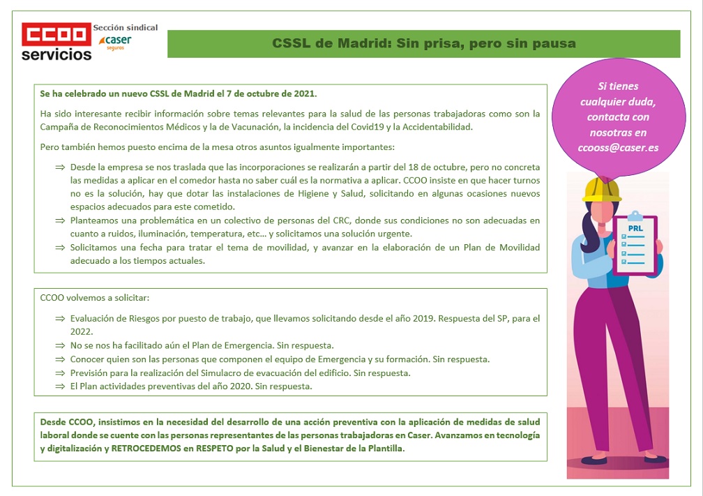 Se celebra la reunión del Comité de Seguridad y Salud de Madrid el 7 de Octubre.