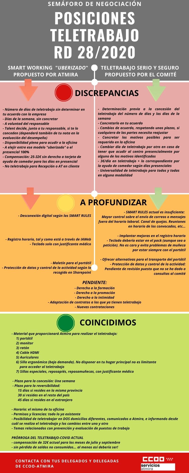 El caso es que, tras las primeras reuniones con los representantes de Atmira para regular el teletrabajo recogido en la ley (Real Decreto 28/2020), ya tenemos su planteamiento que choca frontalmente con un teletrabajo claro, conciso y concreto.