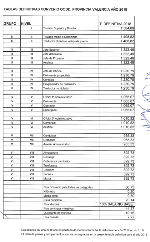 El 13 de Febrero la Comisión Negociadora del Convenio de Oficinas y Despachos de la provincia de Valencia se reunió para firmar las tablas que se aplicarán en el 2018.